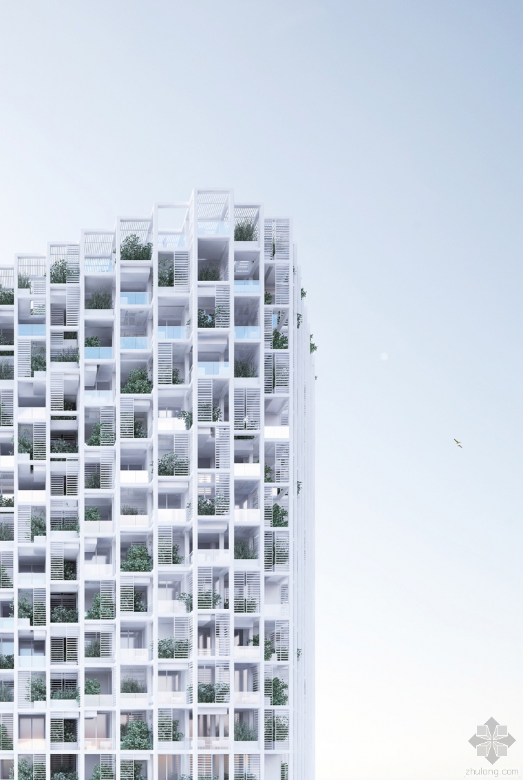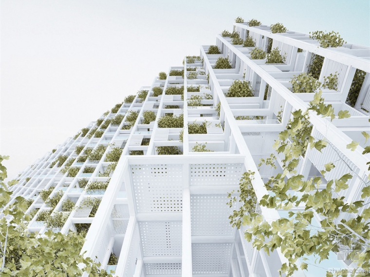 penda首先將一棟建筑中的必要元素——結構、墻體、外立面、天花、地面、基礎設施、陽臺和景觀等要素從傳統的整體思維中分解出來。然后從一個模塊化的格構系統獲得靈感,在新的格構系統中只有網格結構和基礎設施是固定的部分。而其他的要素都可以通過工廠預制進行模塊化加工。這些模塊可以為客戶提供一份目錄,業主可從產品目錄中選取這些模塊。模塊范圍包括不同的地面單元、外立面單元、欄桿陽臺以及供植物生長的豐富多樣的花盆等??蛻艨梢匀我膺x擇符合他們自己品位的元素進行搭配。penda希望為業主提供的是一個工具,使他們成為自己公寓的設計者。