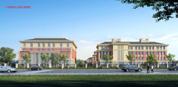 小學(xué)總平面布局將學(xué)校分為多個部分,教學(xué)樓設(shè)置于城市主干道一側(cè),其余各部分通過一條連廊進行串聯(lián),這條連廊形成的開放空間使得各功能部分之間聯(lián)系更加高效。學(xué)校生活區(qū)由宿舍樓及食堂構(gòu)成,置于地塊南側(cè),與教學(xué)部分分開,既減少相互干擾,又便于管理。學(xué)校入口開放空間明確,并通過雕樓及柱廊形成特色入口空間及入口形象。校園建筑力求樸素簡潔,部分采用白色涂料,明快而素凈。
