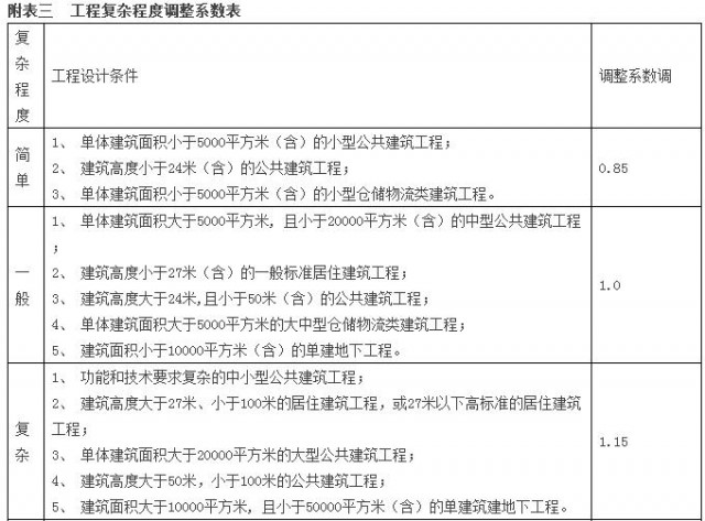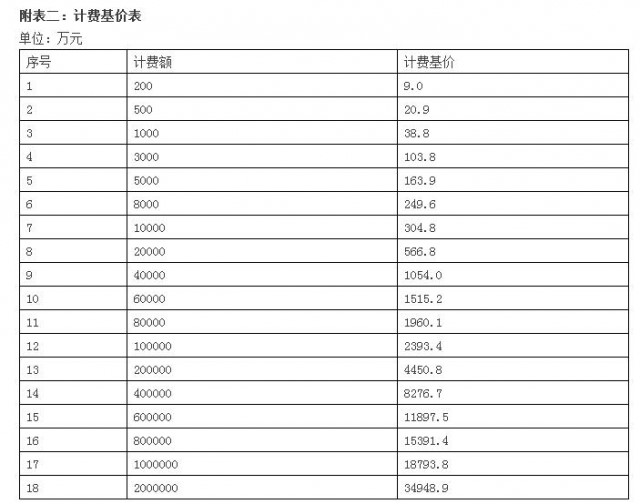 注:計費基價詳見附表二《計費基價表》,計費額處于兩個數(shù)值區(qū)間的,采用內(nèi)插法確定設計計費基價;工程復雜程度調(diào)整系數(shù)詳見附表三《工程復雜程度調(diào)整系數(shù)表》