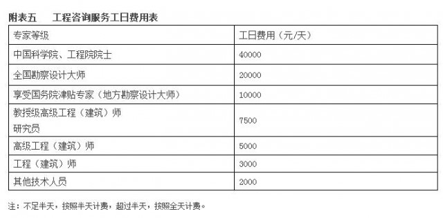 注1:專家等級相應工日費用詳見附表五《工程咨詢服務工日費用表》